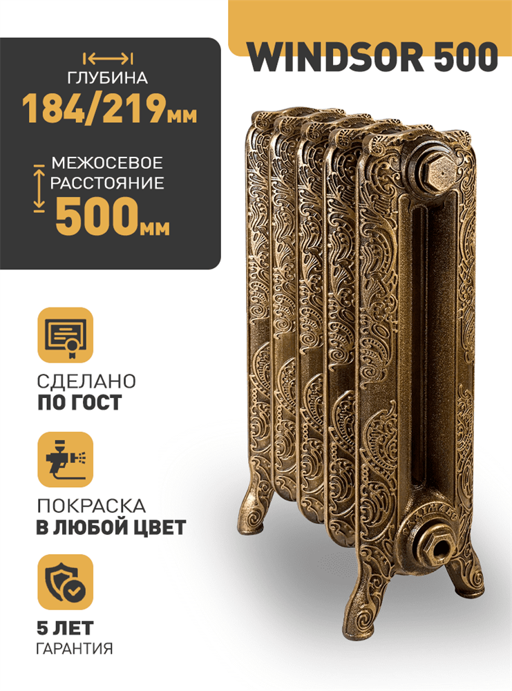 Чугунный радиатор RETROstyle Windsor 500, 1 секция